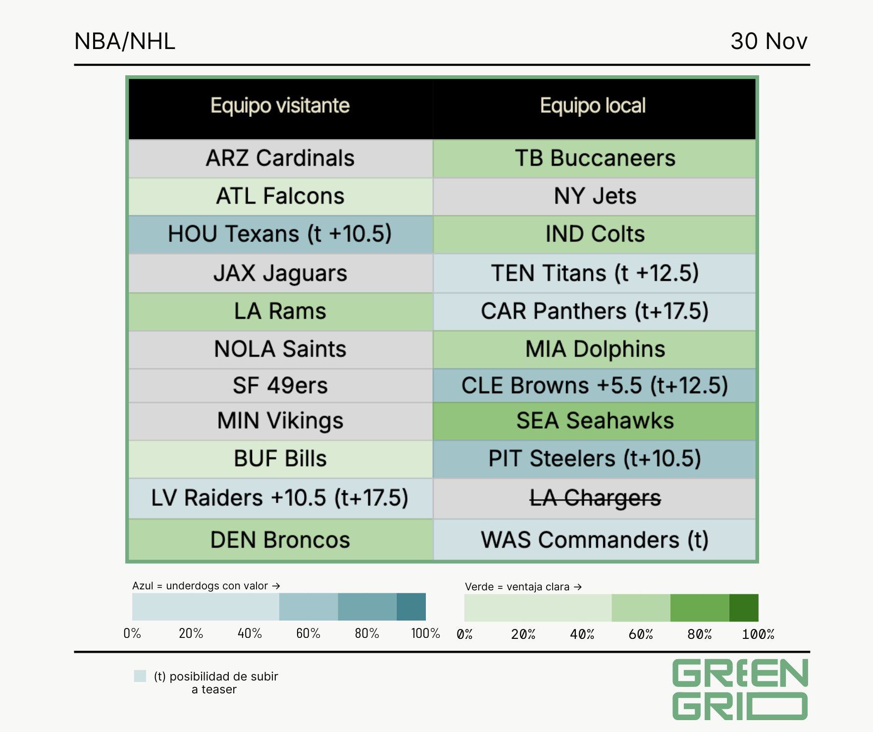 🔥 Domingo de NFL — Hoy te doy el Green Grid… y tú decides si lo conviertes en dinero