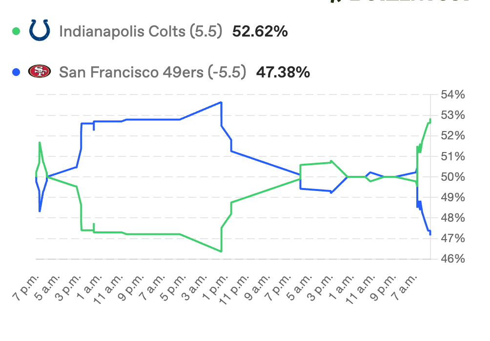 SF pega primero → Colts se abre → volatilidad.