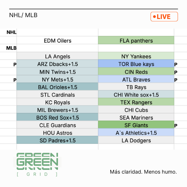 Hoy tenemos una jornada marcada por un cierre de serie en la NHL y una parrilla MLB donde las líneas se cruzan con intención. Te doy lo más caliente del día: