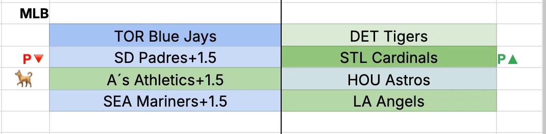 Hoy la jornada se siente como un cruce de caminos. No hay Goliats. Solo varios Davids bien armados. 📈 Claves visuales del día: 🟢 Verde = ventaja clara → STL: ventaja desde el montículo, patrón consistente. 🔵 Azul = underdogs con valor → sí, si sabes leer la espuma y la tendencia. ¿Riesgo? El azul. ¿Estabilidad? El verde apunta directo a St. Louis.