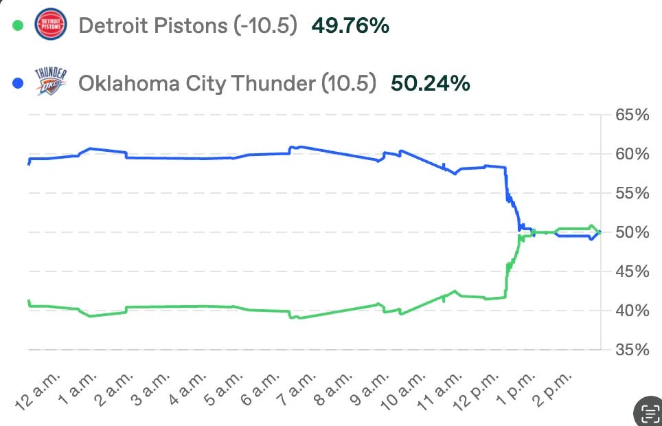 → Spot: DET Pistons ML / OKC +14.5 (1.95 decimal)