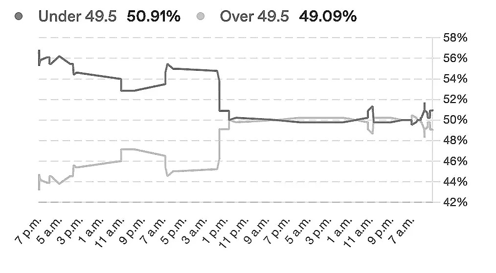 UNDER 49.5 ha subido a 1.91 → nadie lo quiere