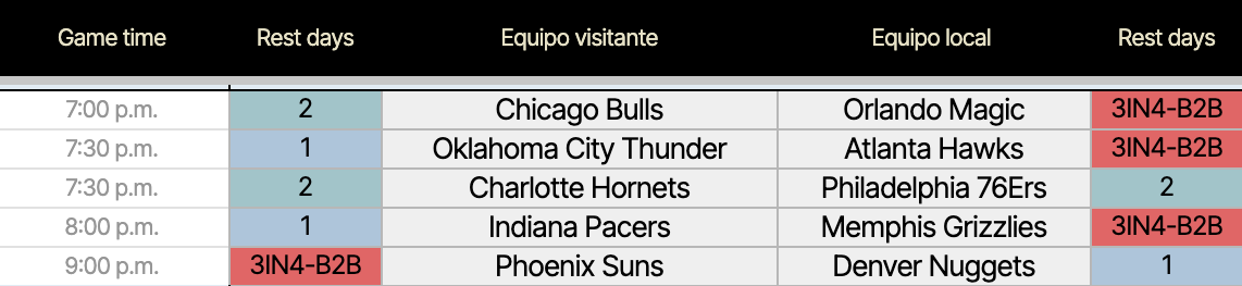 Orlando viene de 3 juegos en 4 días (3IN4-B2B), y jugaron ayer vs Atlanta.