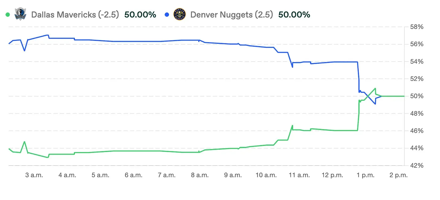 El mercado muestra señales cruzadas. El público reacciona a la baja de Jokic y al calendario exigente, apostando a favor de los Mavericks tanto en ML como en -2.5, pero el dinero más serio no acompaña esa convicción. La línea no se infla, lo que indica que el casino no espera dominio de Dallas, sino simplemente quiere vender fragilidad de Denver.