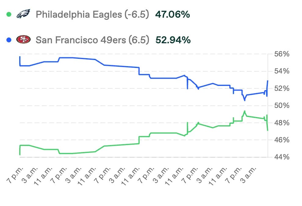 67% de los tickets están en 49ers +6.