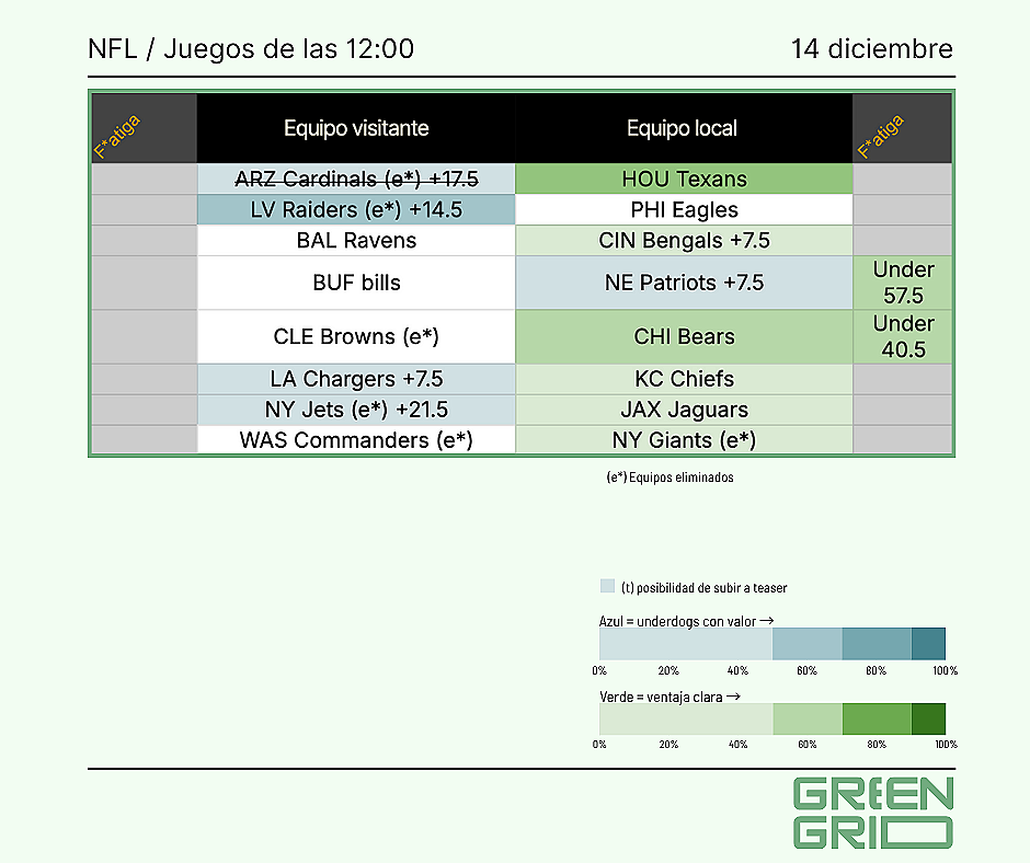 Chargers ML sube constantemente → nadie serio los necesita ganar.